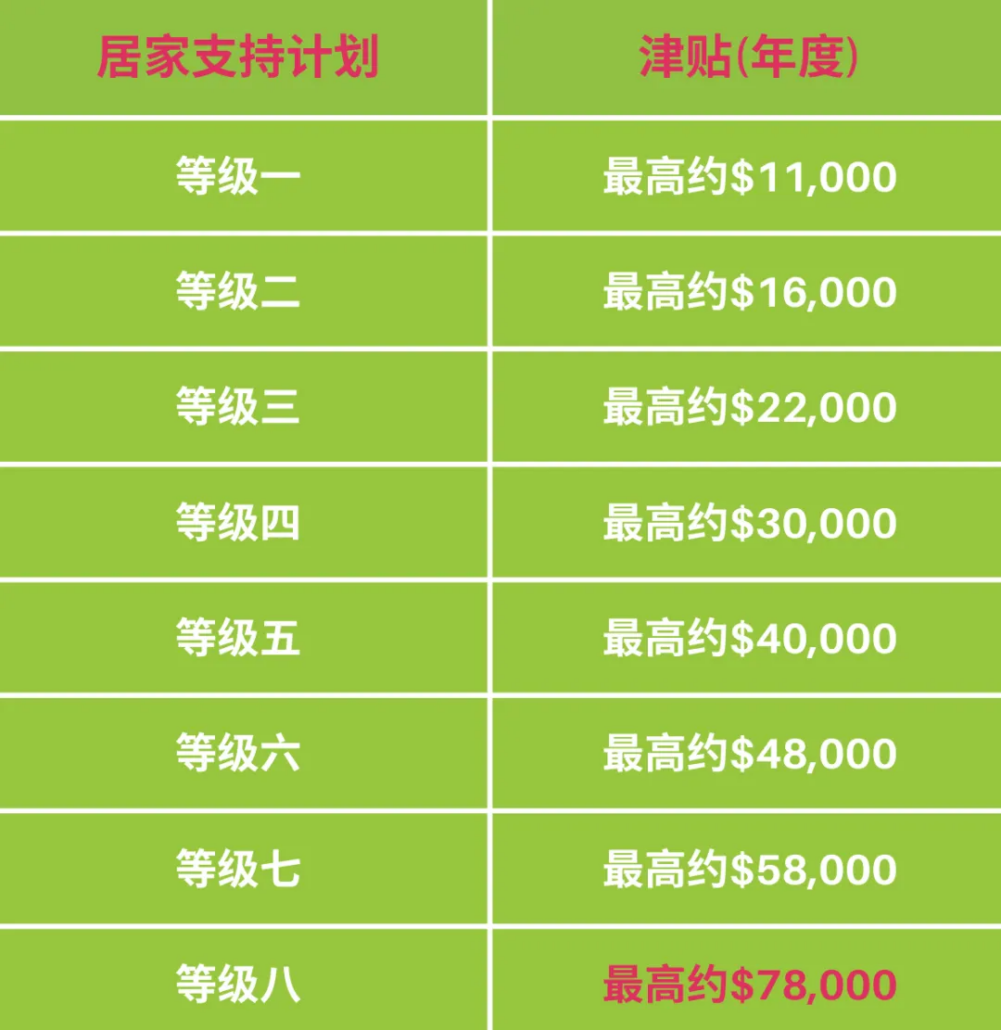 政府每年为符合资格的长者提供最高约$7.8万澳币的津贴,用来支付护理、康复、家务协助、社交活动等多种服务。