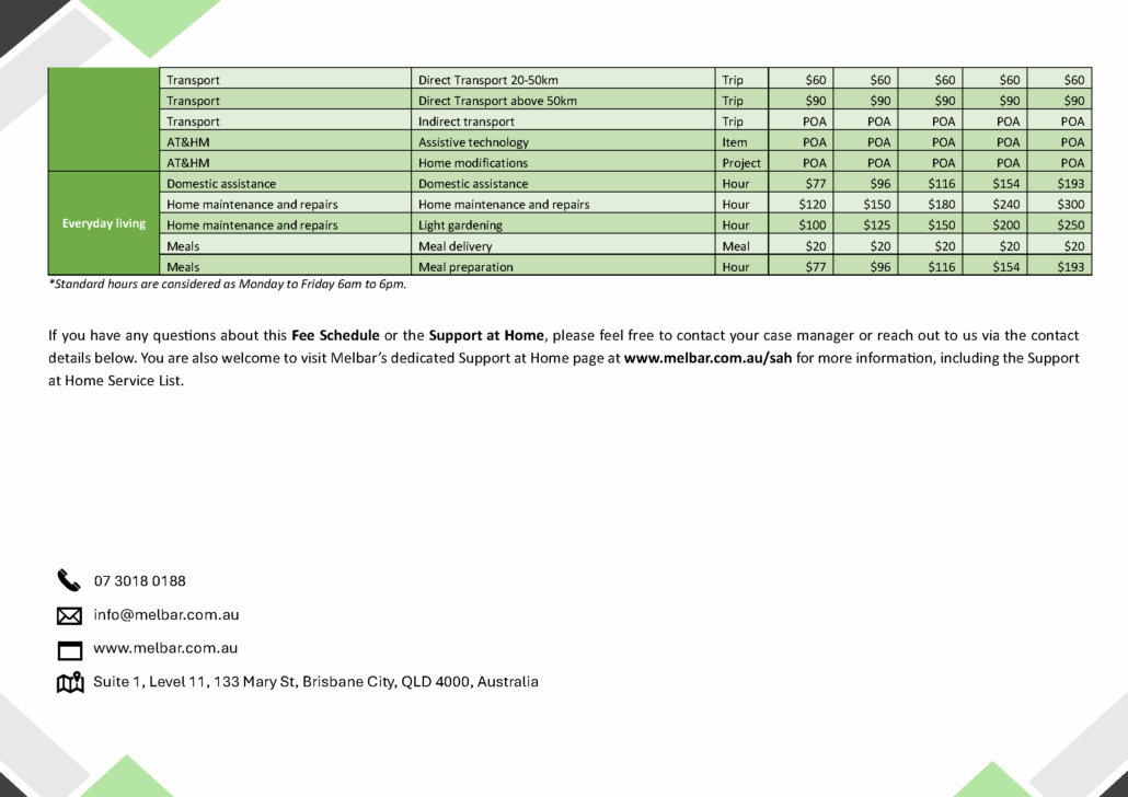Melbar Brisbane Fee Schedule
